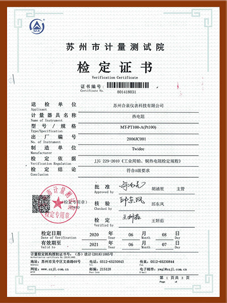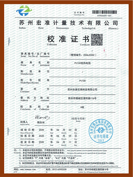 热电阻A级检定证书