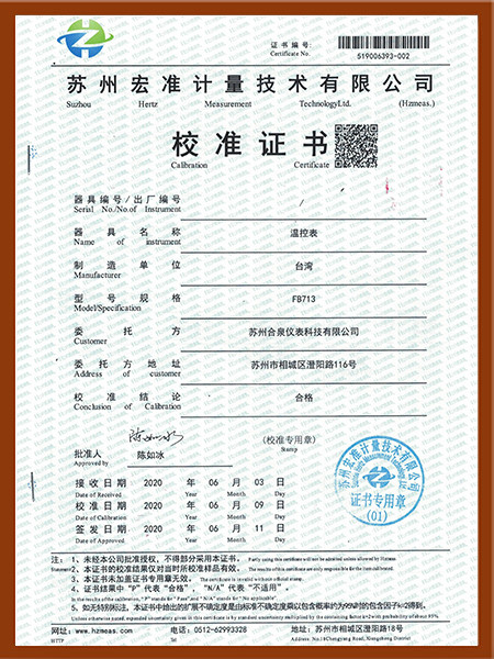温控表2合格校准证书